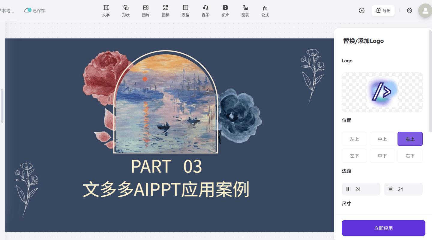 商务演示、品牌推广类PPT需要突出品牌标识?以前都是手动一页一页去添加、调整logo的位置,现在文多多AIPPT编辑页新增了logo上传功能。